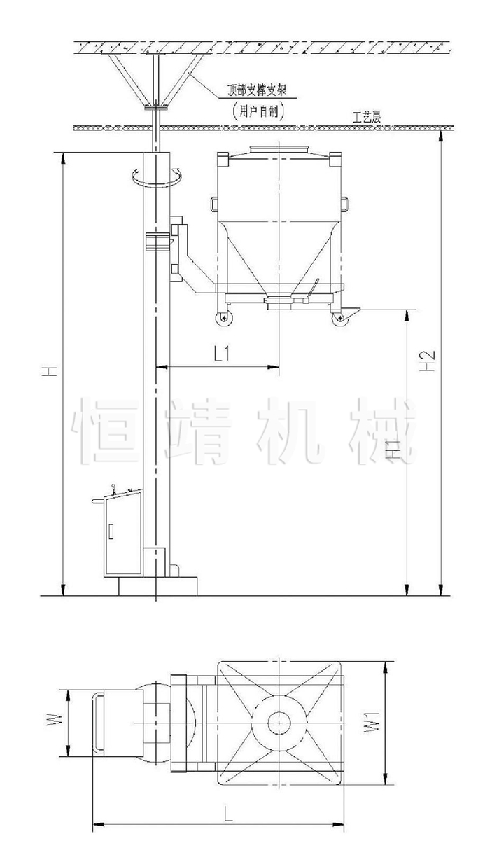 2、与下工序设备可用特制的软管连接,或按用户需要配置自动放料阀。