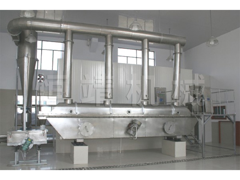 物料自进料口进入机内, 在振动力作用下, 物料沿水平方向抛掷向前连续运动,热风向上穿过流化床同湿料换热后, 湿空气经旋风分离器除尘后由排风口排出, 干燥物料由排料口排出。